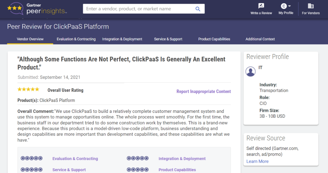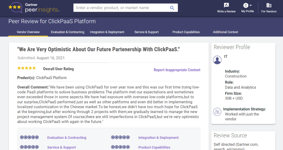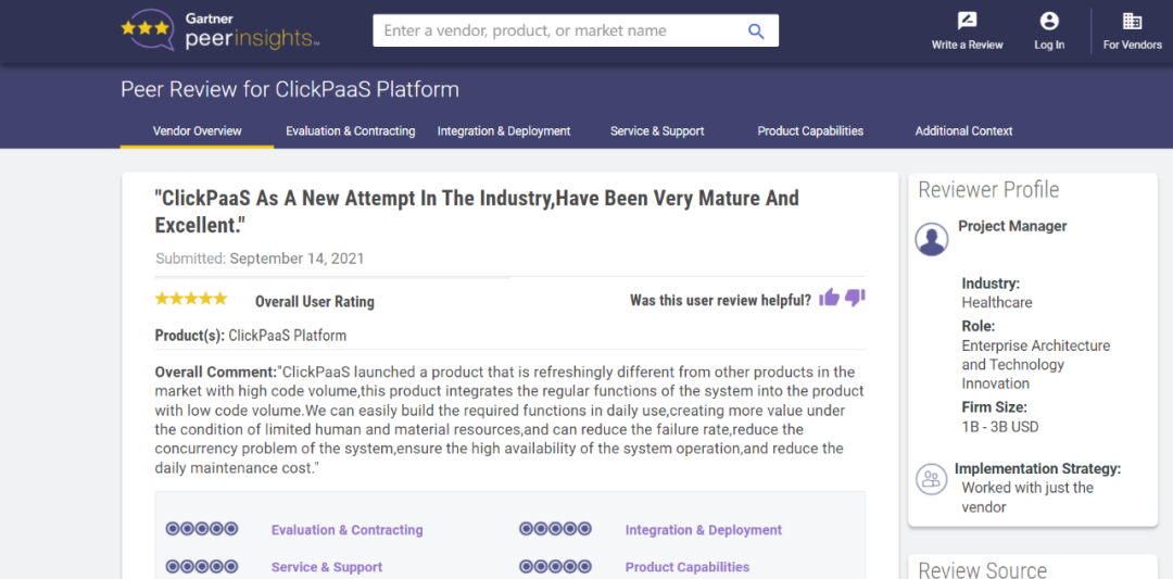 Tips::【Peer Insights】——用户对企业IT产品和服务发布真实评价的平台。。目前已有355个市场,,,255,000条经过验证的评价。。每一条评价Gartner会针对参评企业营收规模及参评人员信息做验证、、、、评价内容做多维核实。。